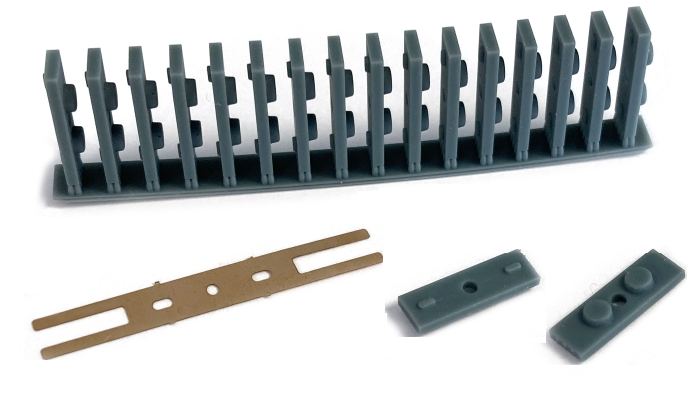 Sur ces voitures, il n'est pas prévu de système de prise de courant. Grâce à cette référence, vous trouverez une petite rehausse qui vient se positionner sur les 2 trous présents au milieu des bogies, et qui comporte des tenons destinés à accueillir les lamelles Decapod 6400 ou 6401.