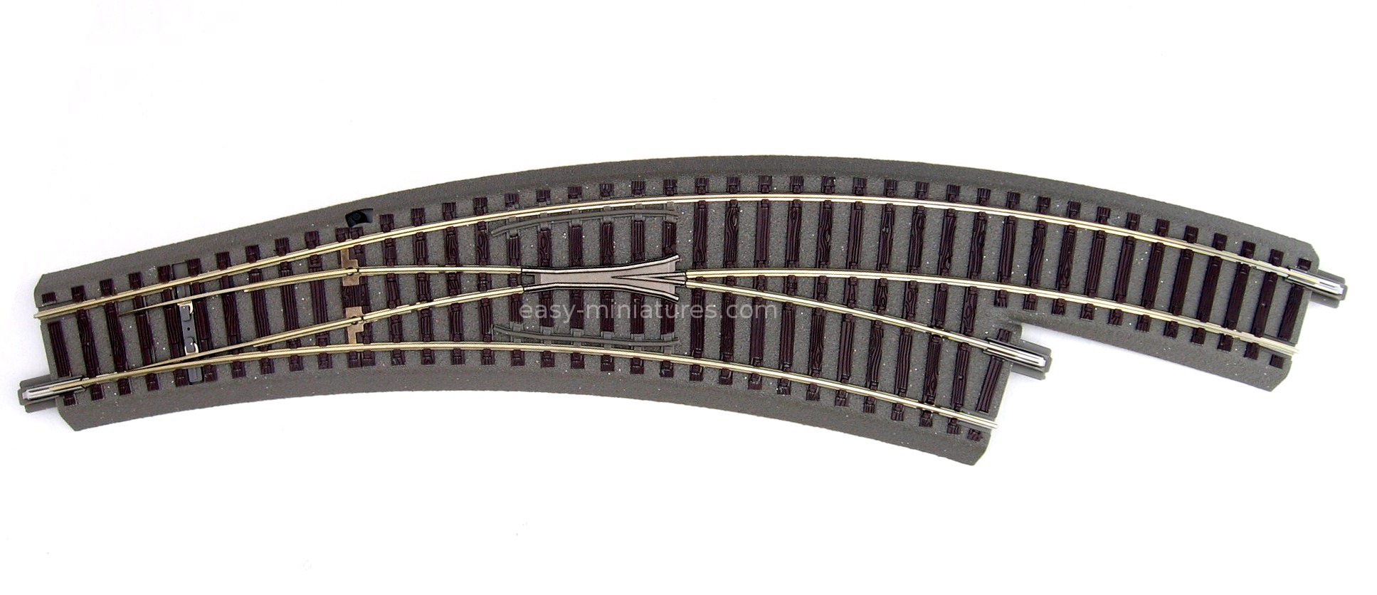 Cet aiguillage est équipé d'une commande manuelle, celle-ci pouvant être remplacé ultérieurement par un moteur d'aiguillage électromagnétique (réf R61195) en vue d'un pilotage à distance de l'aiguille.