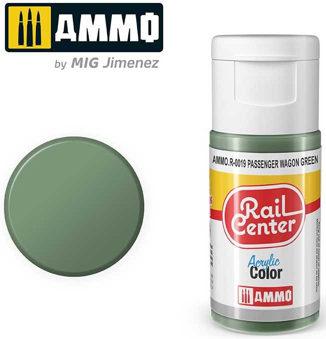 AMMO.R-0019 - Vert pour Wagon de passagers, Peinture acrylique Rail Center, 15 ml