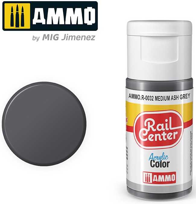 AMMO.R-0032 - Gris Cendre Moyen, Peinture acrylique Rail Center, 15 ml