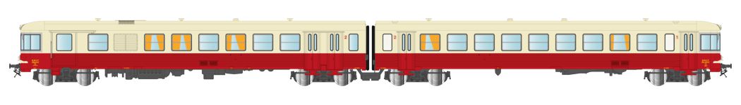 Modèle réduit finement détaillé de l'autorail EAD X4537 avec sa remorque X8532 en version d'origine, livrée rouge / crème avec toit crème, pare-brise avec vitres d’angle, 2 feux et porte lanterne à la place du fanal supérieur, du dépôt de NICE.