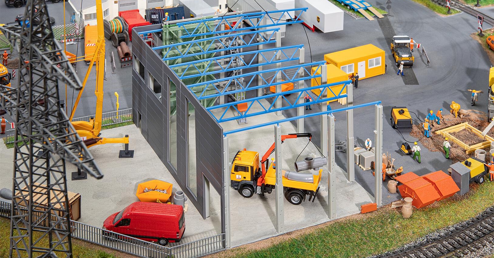 Nous vous proposons, sous la référence FALLER 130892, ce superbe bâtiment industriel en cours de construction, représentant un entrepôt de production, d'expédition ou de stockage.