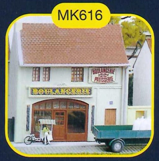 Maquette à l'échelle HO de la marque MKD représentant une boulangerie française.