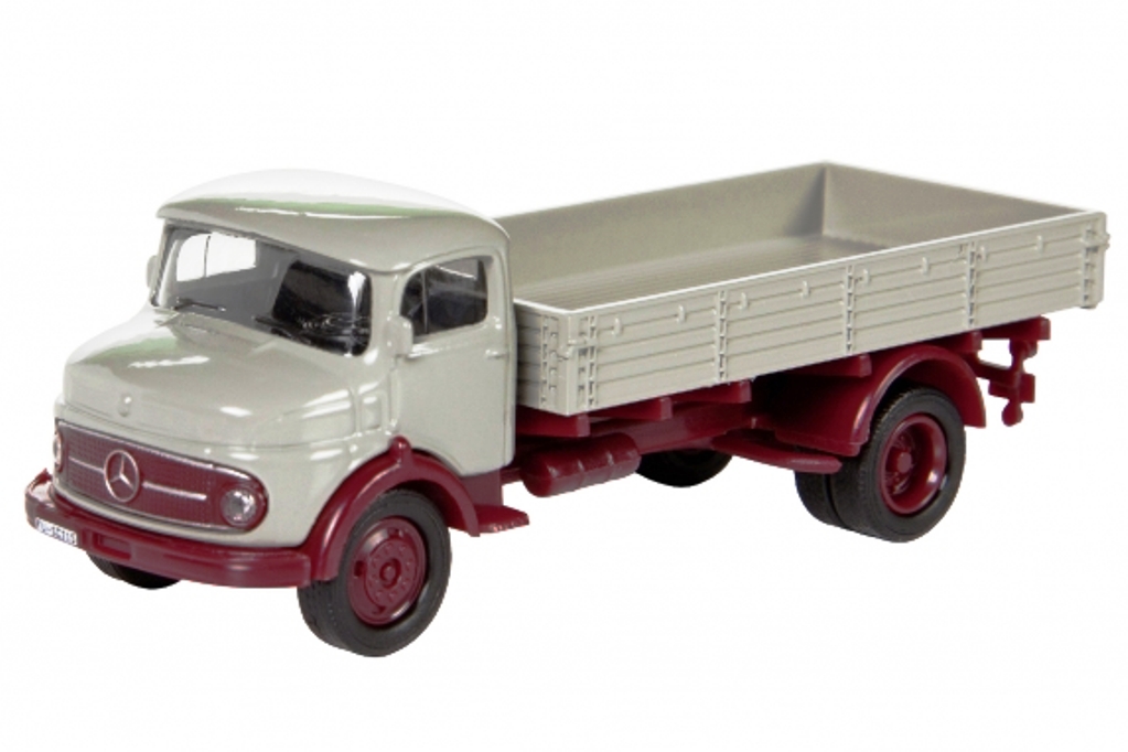 Modèle réduit Schuco finement détaillé représentant un Camion Mercedes-Benz L911 gris et bas de caisse rouge