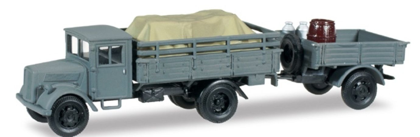 Camion Opel Blitz et remorque pick-up avec chargement "Wehrmacht"