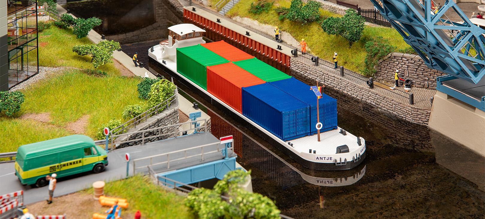 Maquette Faller à l'échelle HO (1/87), représentant un cargo avec conteneurs,