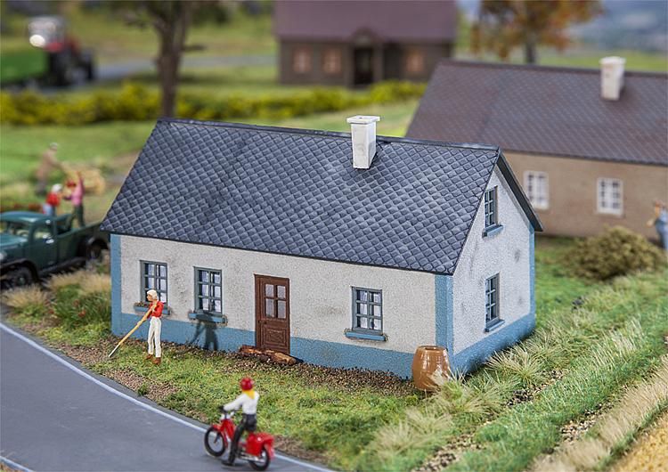 Modèle simple, d'un étage à la façade crépie, avec lucarnes et toiture en ardoise.