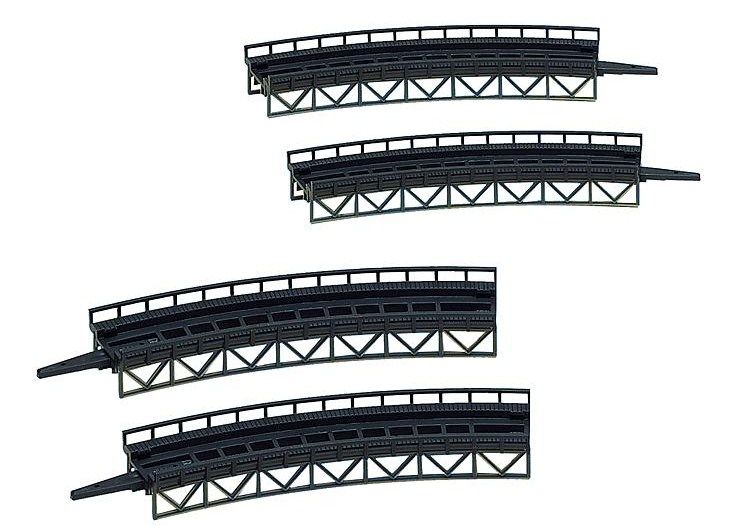 Ce kit Faller 282905 est constitué de 2 chemins de roulement courbes de rayon 195 mm et 2 autres de rayon 225 mm. Les 4 éléments font un arc de 30°