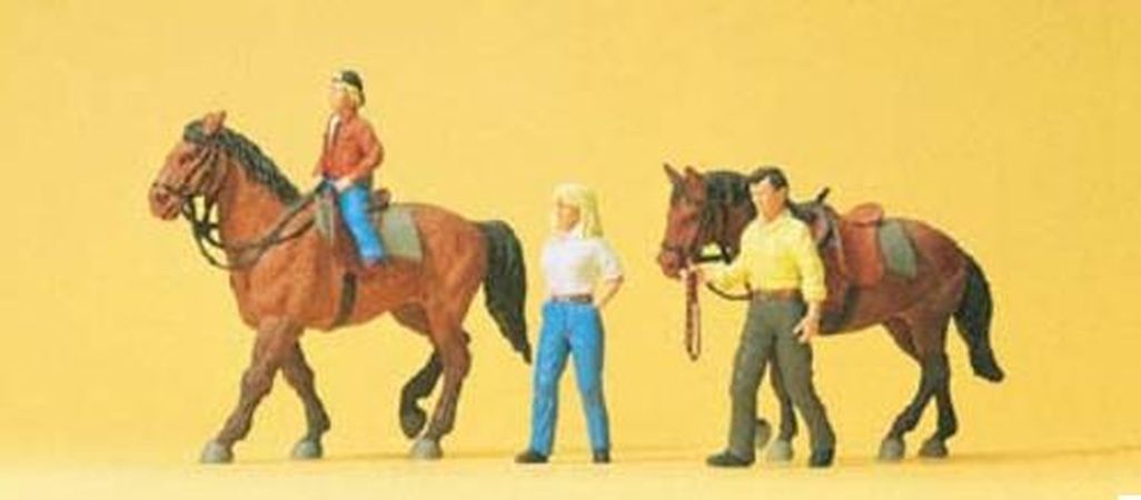 Figurines Preiser avec 3 personnages et 2 chevaux