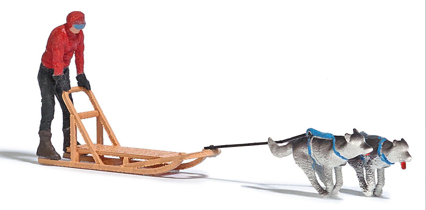 Chiens et traineau avc conduction veste rouge