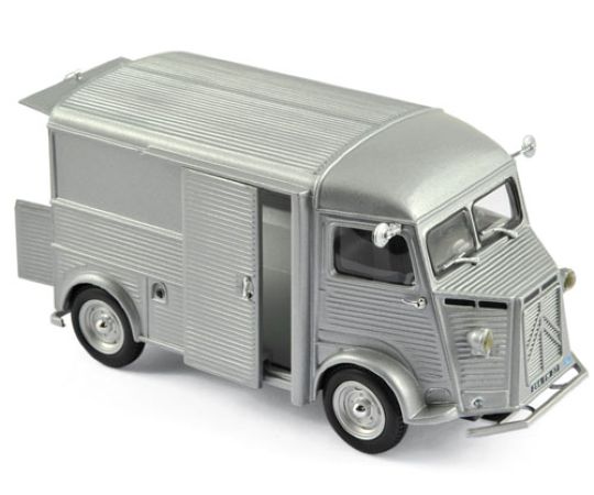 Véhicule norev représentant une tube Citroën HY de 1962, de couleur argenté