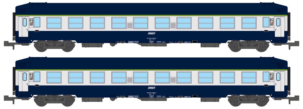 Coffret 2 voitures couchettes UIC B9c9x toit haut, livrée TEN logo encadré
