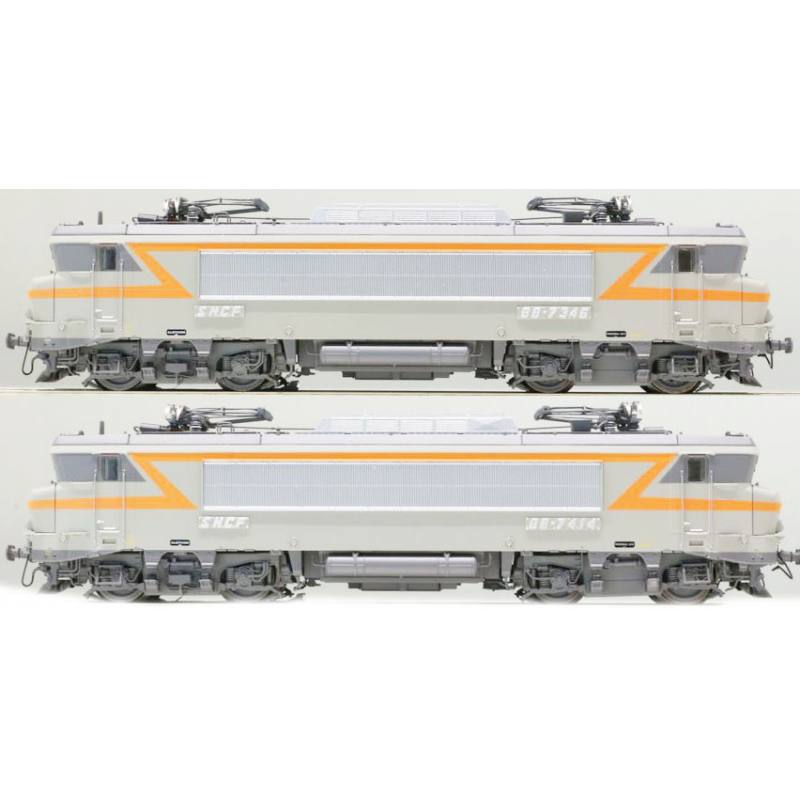 Coffret de 2 locomotives électrique BB 7346 / BB 7414 livrée grise et bande orange avec plaques SONORISE