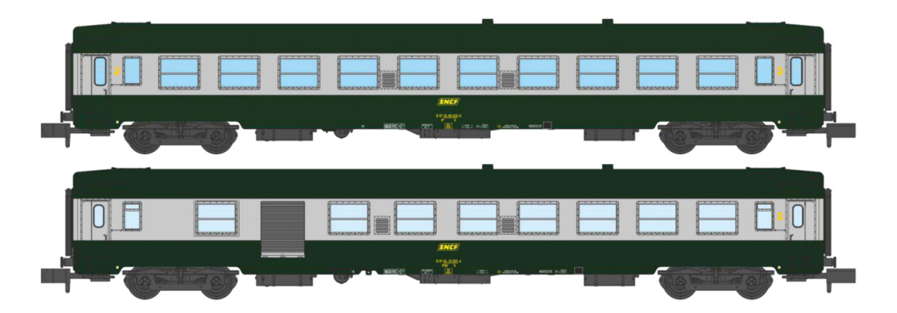 Coffret de 2 voitures UIC B10 et B5D Vert/ALU Livrée 160 Logo jaune encadré Ep.IV