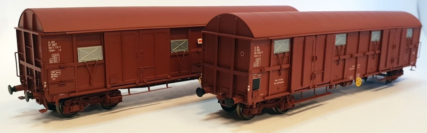 Coffret de 2 wagons Gahkkss livrée rouge UIC deux tons avec logo Roussillon Express et Bagages Express
