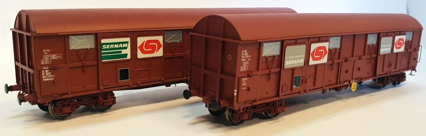 Coffret de 2 wagons Gahkkss livrée rouge UIC deux tons avec logo vert et rouge SERNAM