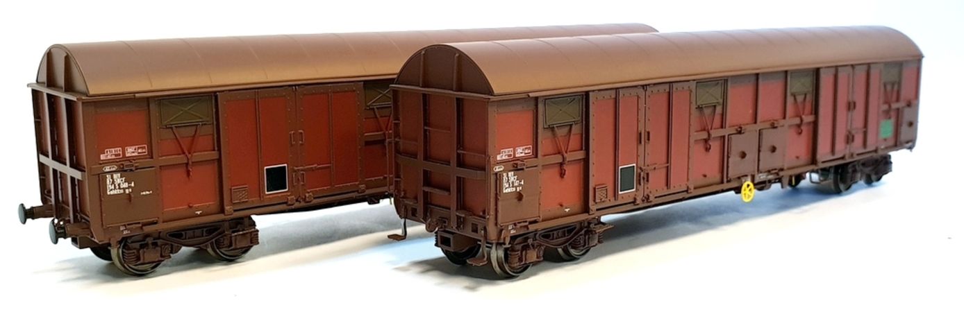 Coffret de 2 wagons Gahkkss livrée rouge UIC deux tons avec logo vert FRET et logo blanc FRET