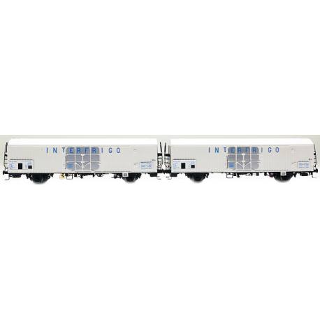 Set de 2 wagons livrée blanc avec châssis long et inscription INTERFRIGO bleu centré