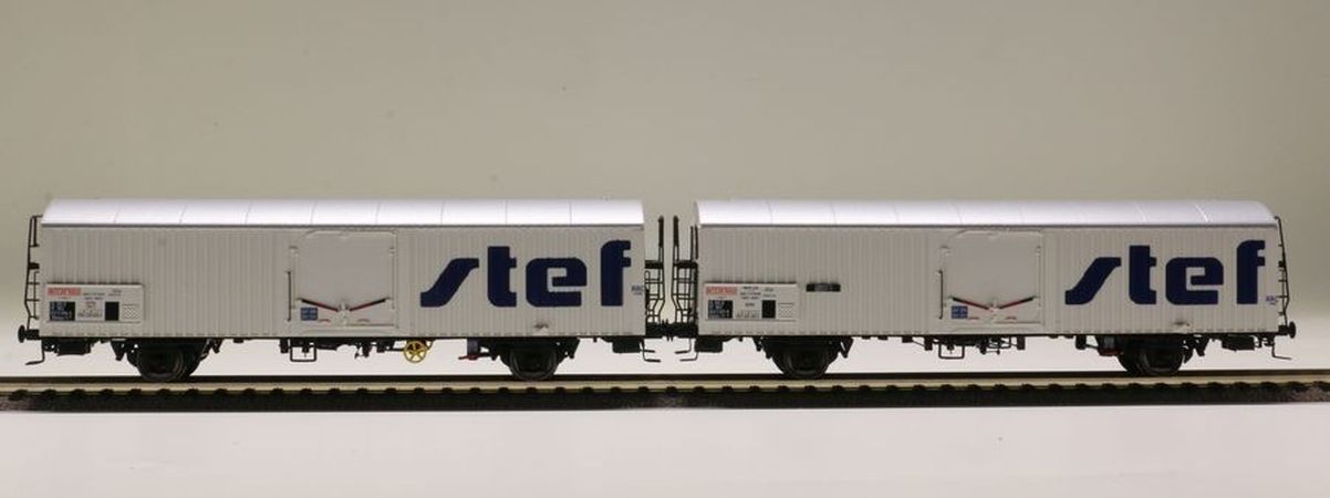 Set de 2 wagons livrée blanc avec châssis long et inscription nouveau logo STEF décentré