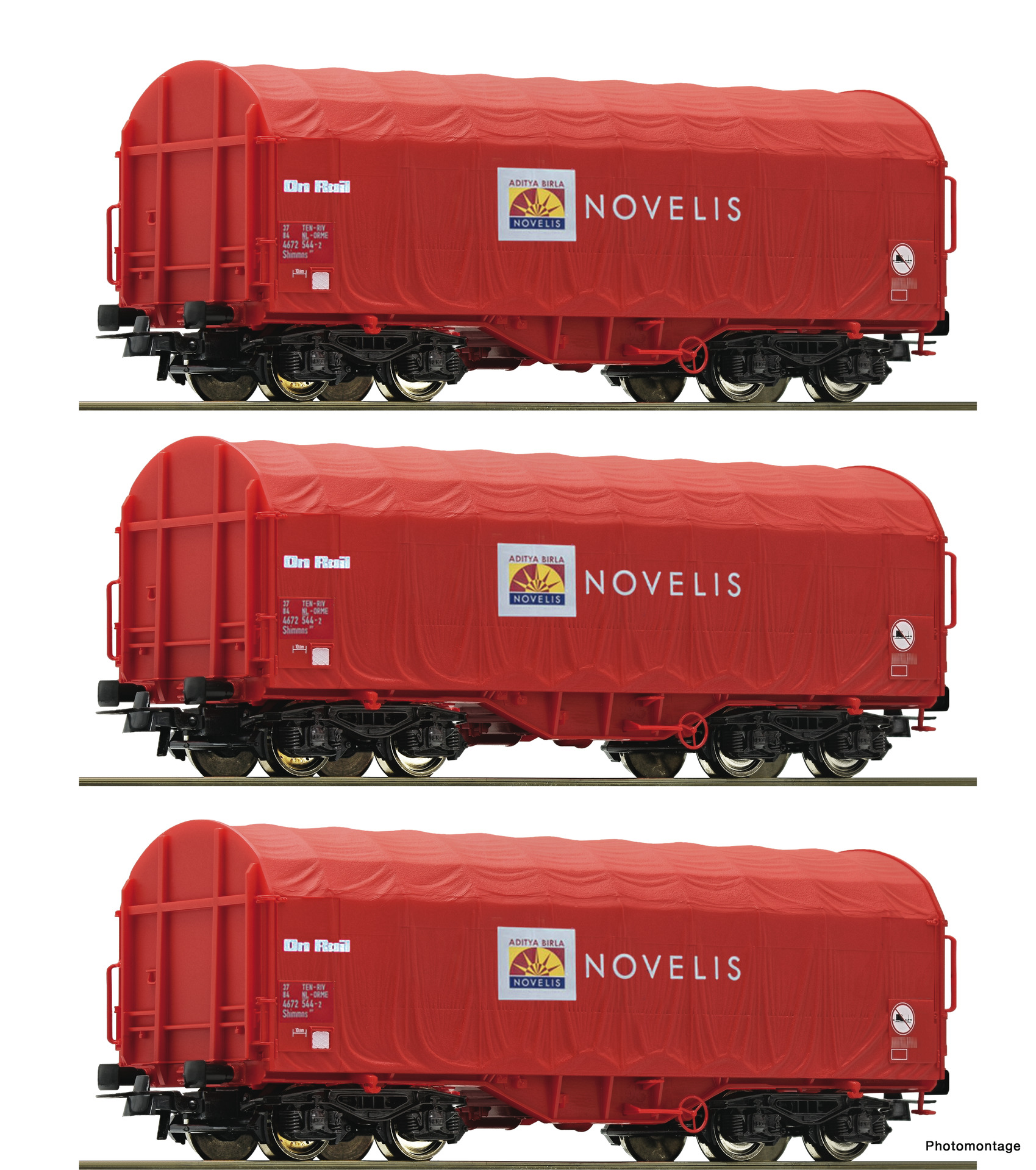 ROCO R 76095 - Coffret de 3 pièces : Wagons à bâche coulissante, Novelis