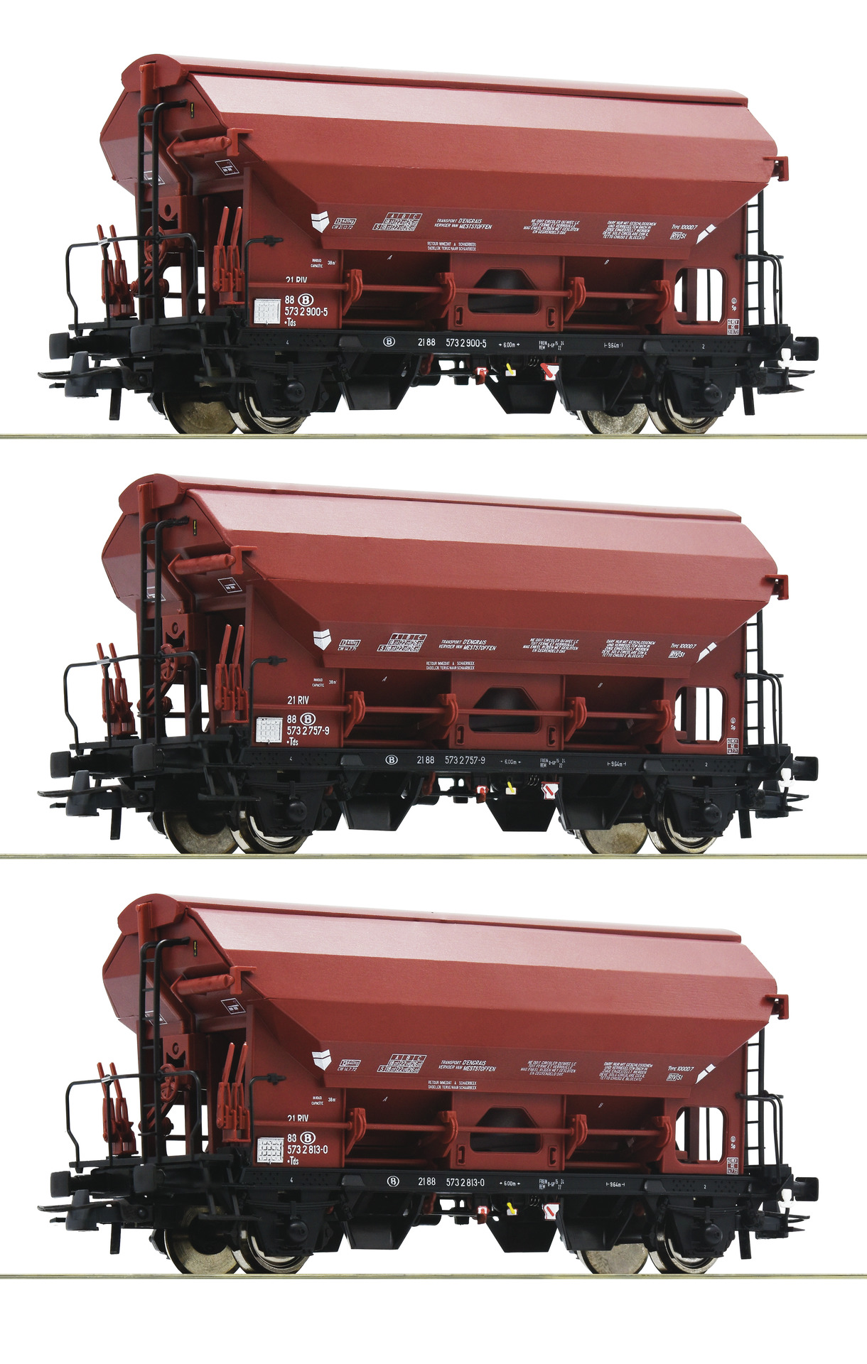 Coffret de trois wagons à toit pivotant type de construction Tds de la Société Nationale des Chemins de fer belge