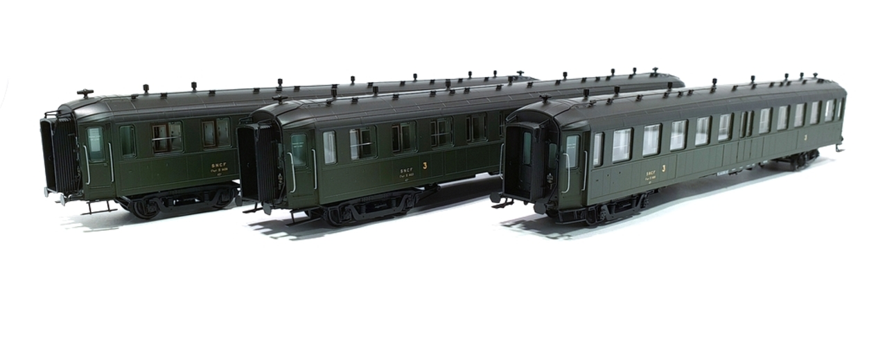 Coffret de 3 voitures « Bacalan » châssis noir, Vert SNCF 306 Ep.III B