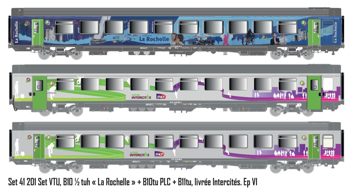 Coffret de 3 voitures Corail Vtu, SNCF, La Rochelle + Intercités