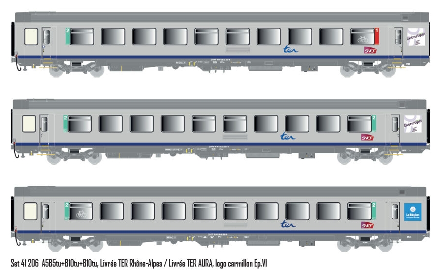 Coffret de 3 voitures Corail Vtu, SNCF livrée Rhône-Alpes