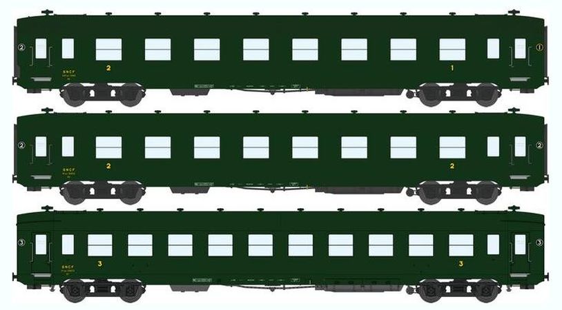 Modèle réduit Ree se composant d'un coffret de 3 voitures voyageurs avec les caractéristiques suivantes :