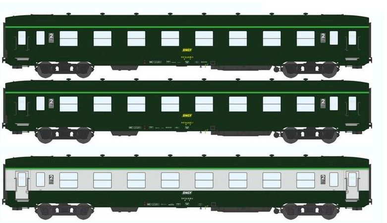REE VB-055 - Coffret 3 voitures DEV AO Courtes Ep.IV-V Vert garigue - Gris béton Cartouche Corail