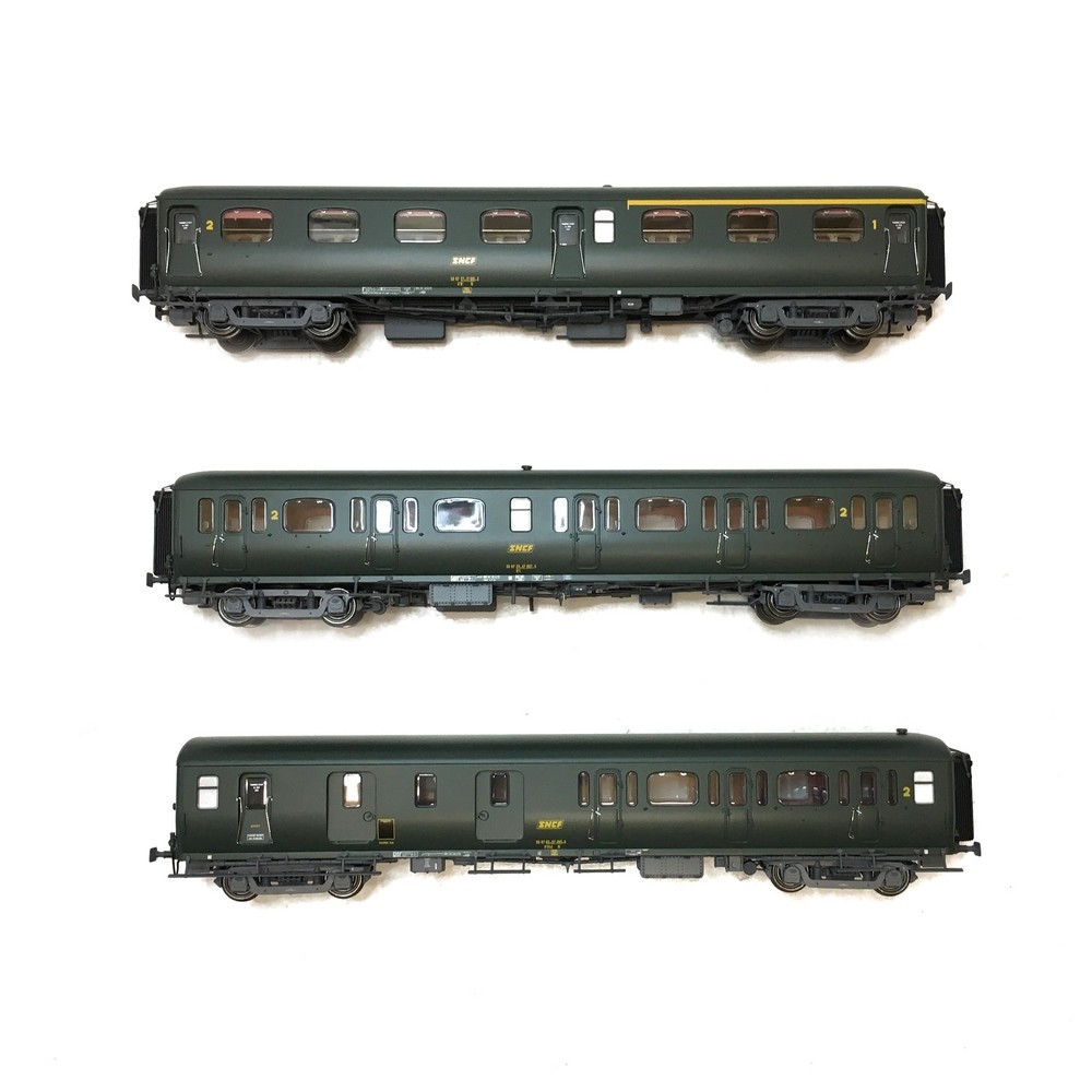 Coffret de 3 voitures Express Nord A7 + B9 + B5d livrées vertes, châssis gris, toit vert, inscriptions jaunes