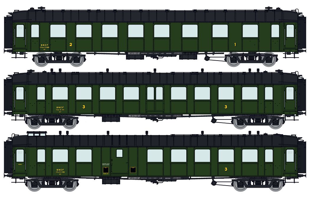 Coffret de 3 Voitures OCEM RA SNCF Ep III, toit noir