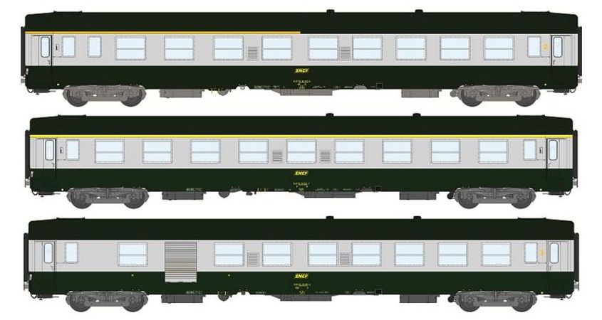 Coffret de 3 voitures UIC Ep.IV Livrée 160, logo jaune encadré.