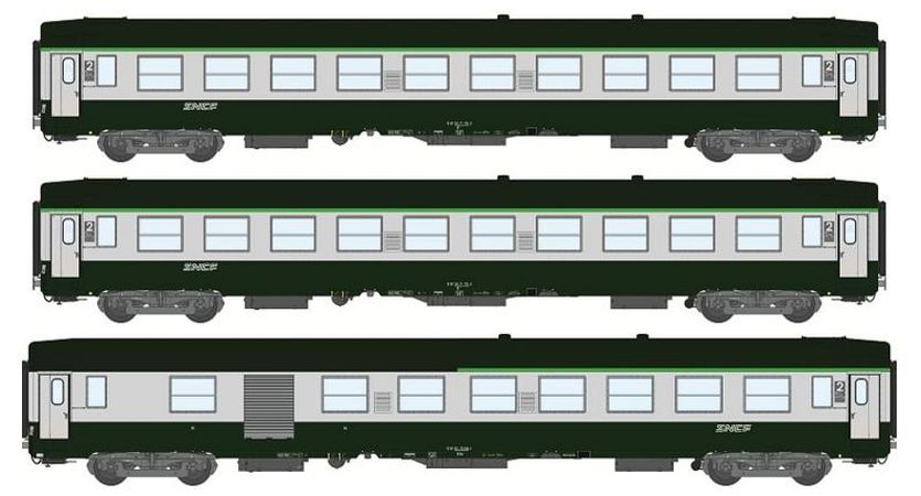 REE VB-102 - Coffret de 3 voitures UIC Ep.V logo nouille, cartouche corail