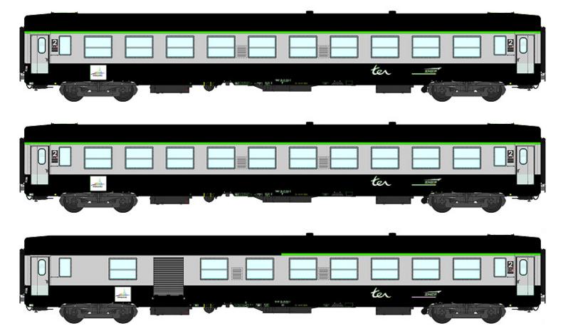 Coffret de 3 voitures UIC Ep.V TER, cartouche corail