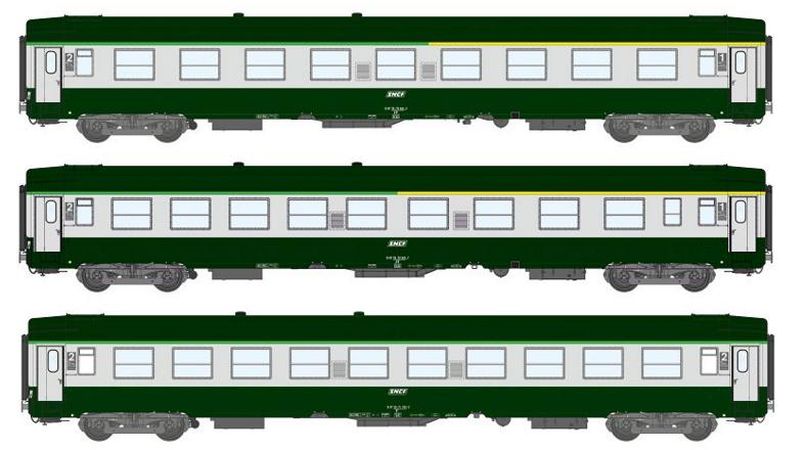 REE VB-122 - Coffret de 3 voitures UIC Vert Garrigue / Gris Béton Ep.IV-V.