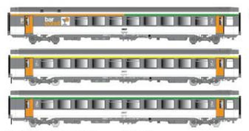 Coffret de 3 voitures voyageurs B5rtu+A10 rtu+Bll SNCF