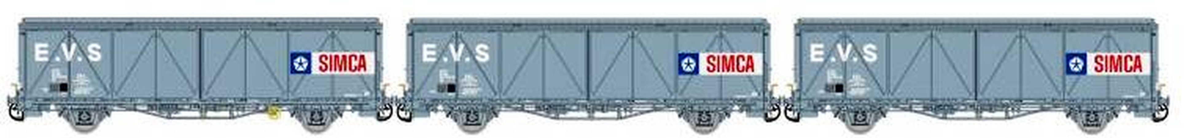 Coffret de 3 wagons couvert EVS livrée gris avec parois renforcées et logo "SIMCA"