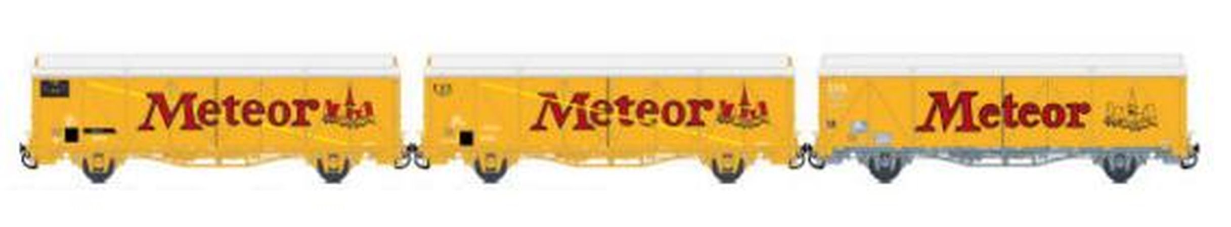 LSMODEL LSM30651 - Coffret de 3 wagons couvert Hs EVS logo "METEOR"