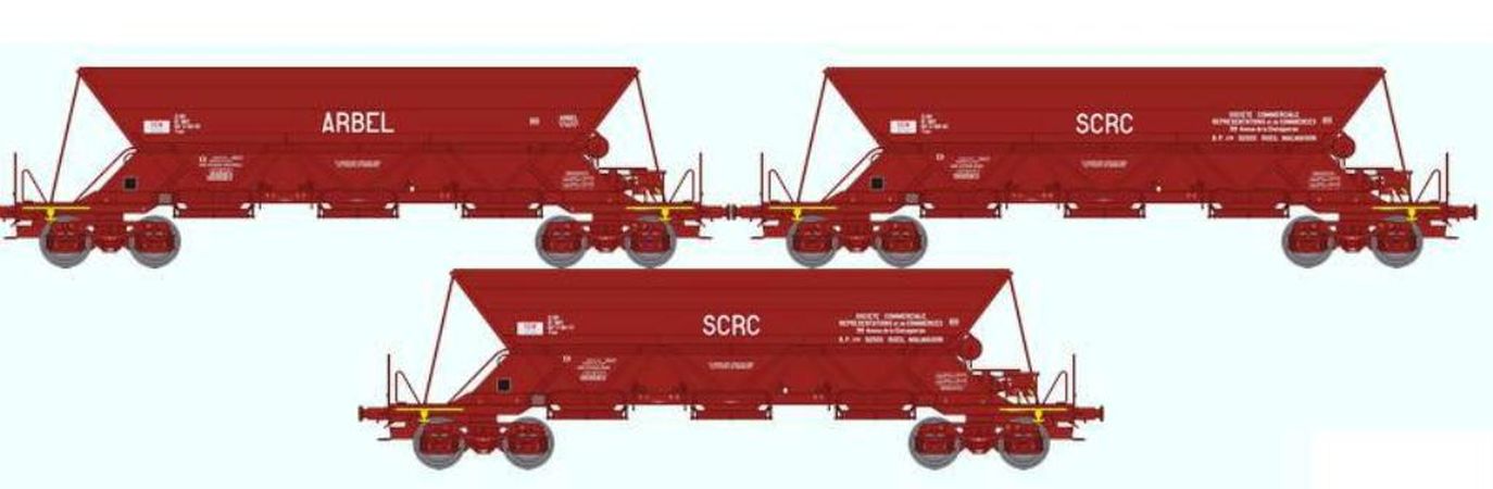 Coffret de 3 wagons TREMIE EX T1 Ep.IV "ARBEL/SCRC" se présentant comme suit :