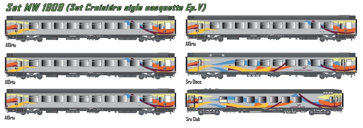 Coffret de 6 voitures Train Croisière, sigle casquette, SNCF