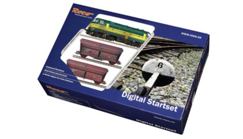 Coffret digital de départ ROCO comprenant un train de marchandises, ainsi que tous les accessoires de voies pour mettre en place un réseau (rails + alimentation digitale)