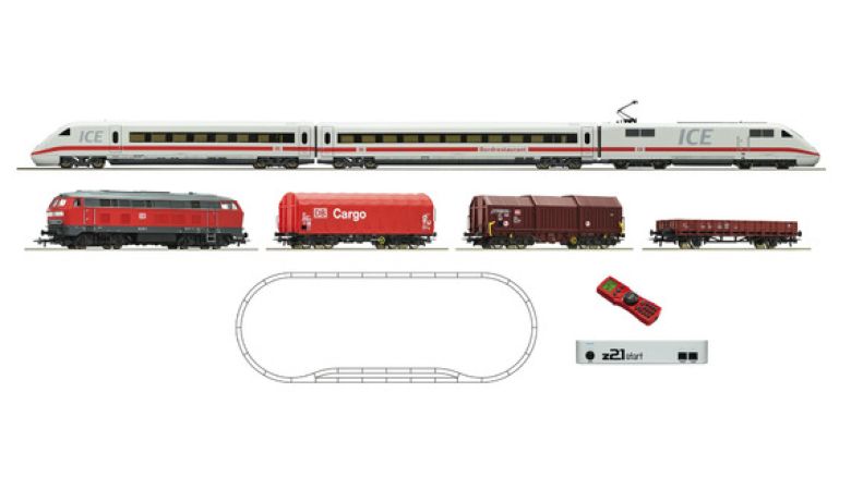 ROCO R51286 - Coffret de départ numérique: TGV ICE2 et locomotive diesel série 218 avec wagons de marchandises de la DB