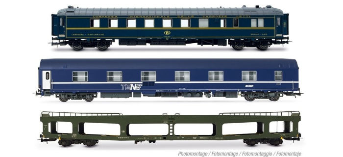 Coffret "Train Auto-Couchette" SNCB/SNCF composé de 1 x WR SNCB ex CIWL + 1 x WL T2 SNCF + 1 x DD SNCB