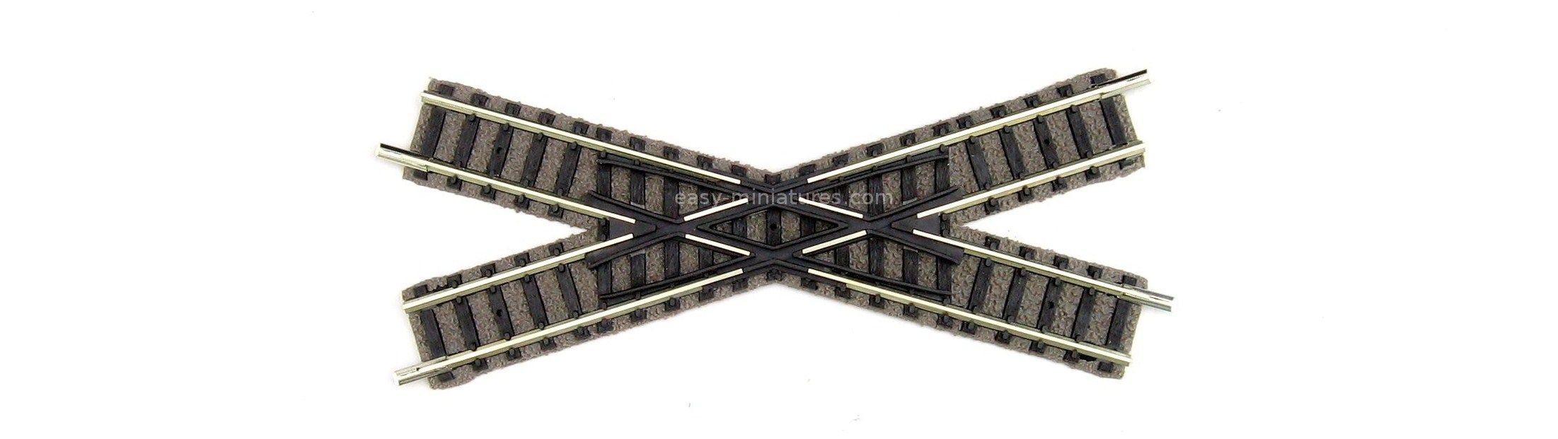 Les 2 rails qui se croisent ont une longueur de 115 mm (correspondant à 2 rails FL9102). Chaque voie qui se croise est isolée électriquement l'une de l'autre.