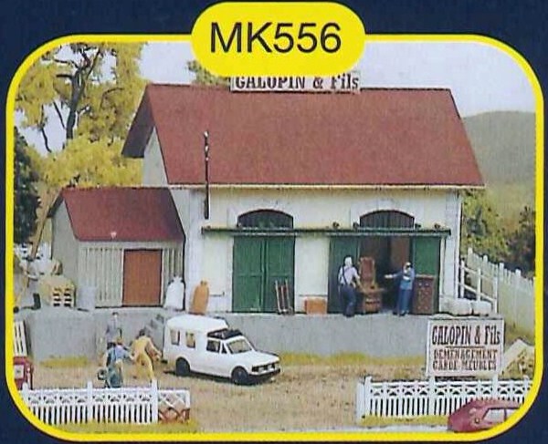 Maquette en plastique de la marque MKD représentant un bâtiment français de l'entreprise de déménagement et garde meubles "Galopin & Fils".
