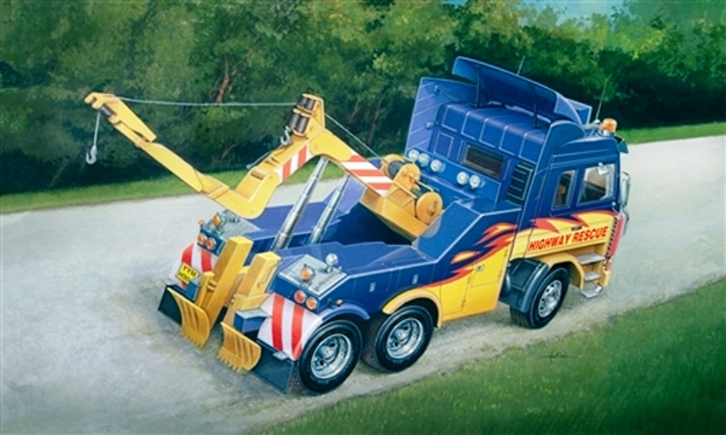Maquette Italeri représentant un camion de dépannage, le dépanneur Scania 143R