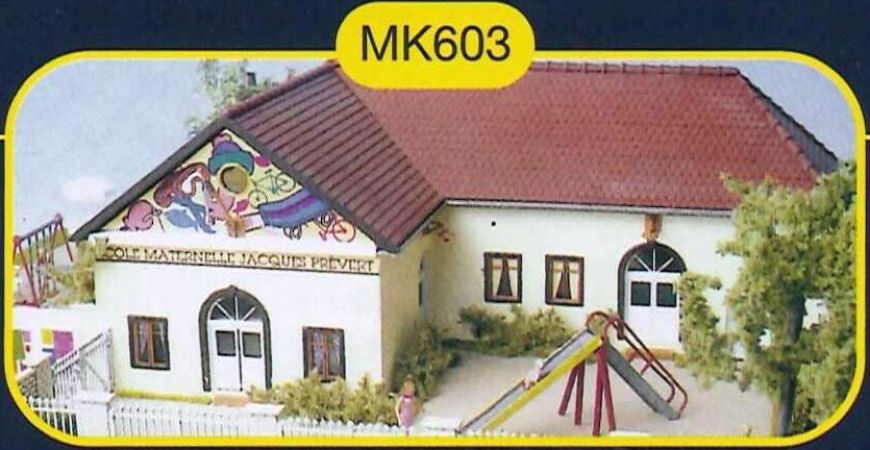 Maquette à l'échelle HO de la marque MKD représentant une école maternelle Française