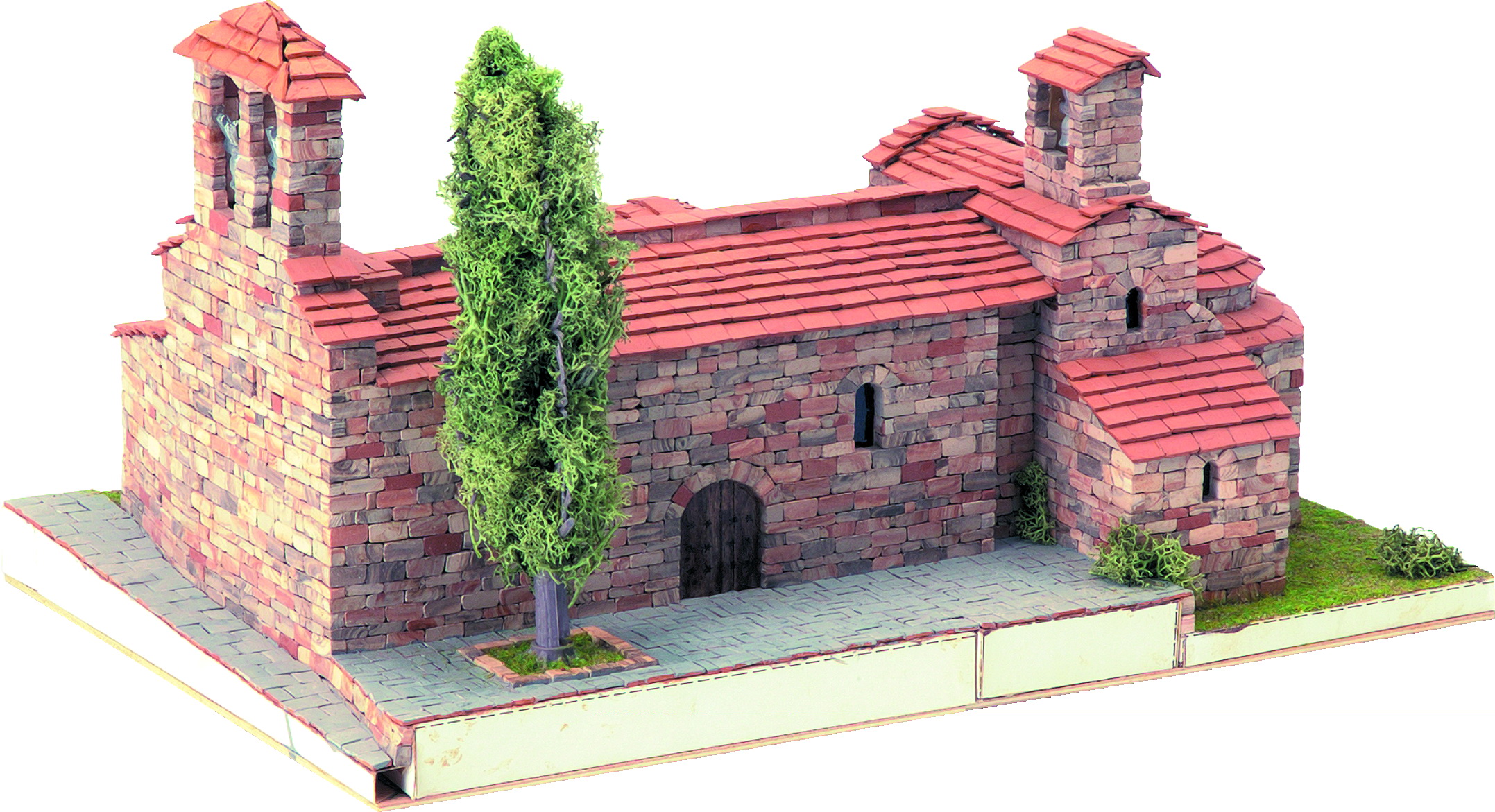Domus vous propose une large gamme d’églises et autres bâtiments miniatures en kit qui contiennent tous les éléments nécessaires à la construction de chaque modèle. Conçue à partir de matériaux naturels (céramique et bois), l’offre de maquettes à construire Domus est regroupée en 11 séries, chacune représentant un style bien particulier d'ouvrages.Proposée sous la référence Domus 40801, cette maquette à construire soi-même fait partie de la série "Arte Romanico" correspondant à la reproduction d’églises réelles de style roman et préroman. Le kit comprend tous les éléments nécessaires à sa construction, y compris le support de base et la végétation.