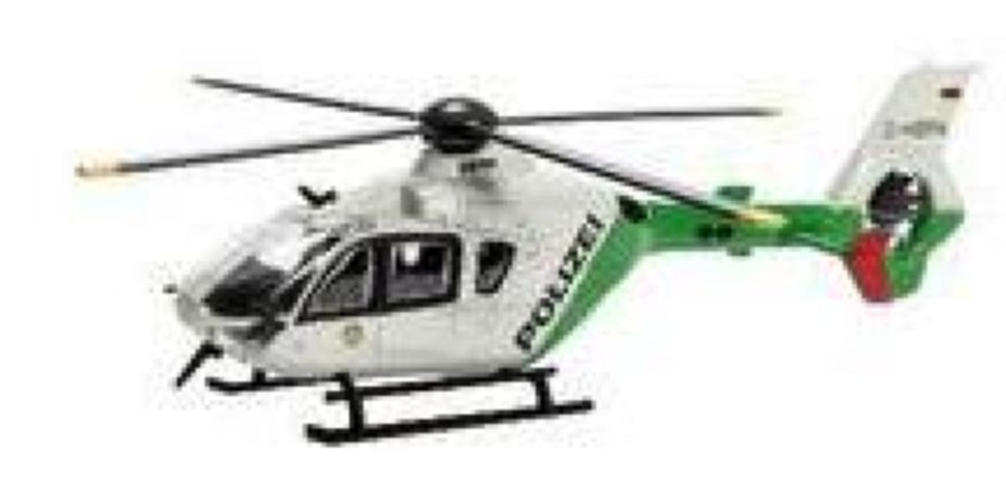 Modèle réduit de chez Schuco finement détaillé représentant un Eurocopter de la police en blanc et vert